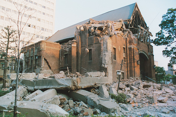 高圧ケーブルがぶら下がっていて、世紀末の日本という