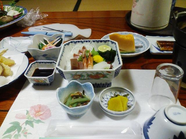 旅館での夕飯、、、何年ぶりだろ、こんなちゃんとしたご飯を食べるのは。